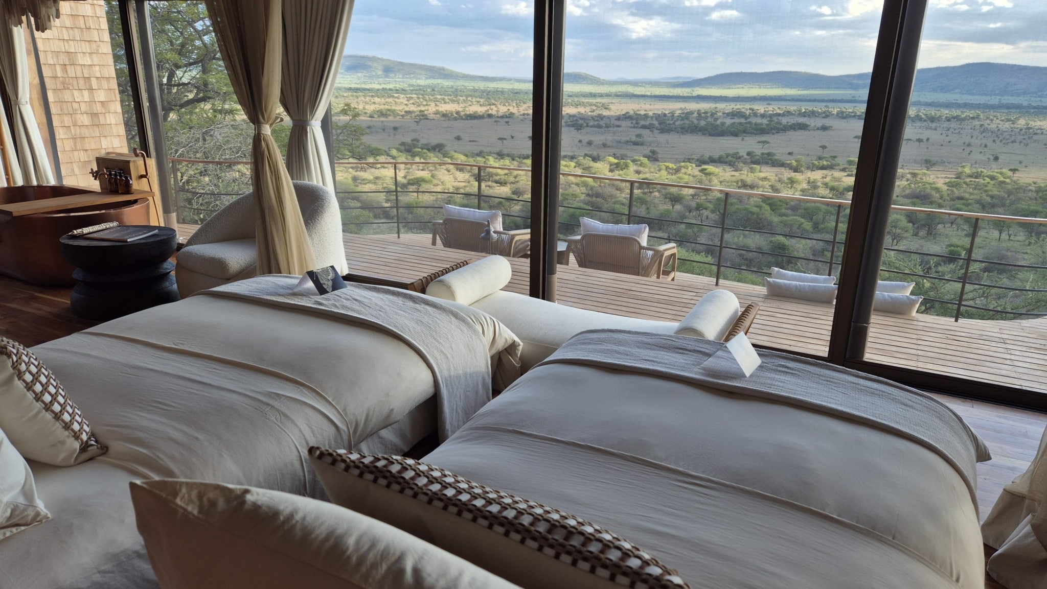 Revenons-en à nos gnous. Après avoir atterri sur la piste de Seronera, déjà accueillis par une famille de hyènes squattant un terrier d’oryctérope sur le bas côté de la piste, nous sommes transférés dans l’un des très beaux camps du centre Serengeti, où l’ambiance Out Of Africa n’a jamais été mieux retranscrite qu’ici. Pendant 2 jours, nous allons en prendre plein les yeux ! face à une plaine ouverte en contrebas du camp, les tentes s’intègrent parfaitement dans la savane et chaque véranda privée se transforme en un spot d’observation privilégié. Gnous, zèbres, éléphants, antilopes déambuleront devant nos tentes, tandis que hyènes et lions se feront entendre la nuit…