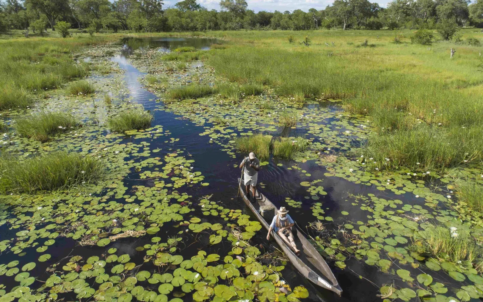 Dernière journée de découverte de cette région fascinante qu’est le Delta de l’Okavango, avec une excursion en mokoro dans une zone de concession gérée par la communauté. Votre guide vous emmènera en voiture jusqu’à la station de mokoro où vous rencontrerez votre percheur (guide) de mokoro, qui vous fera partager les mystères de ce système d’eau.