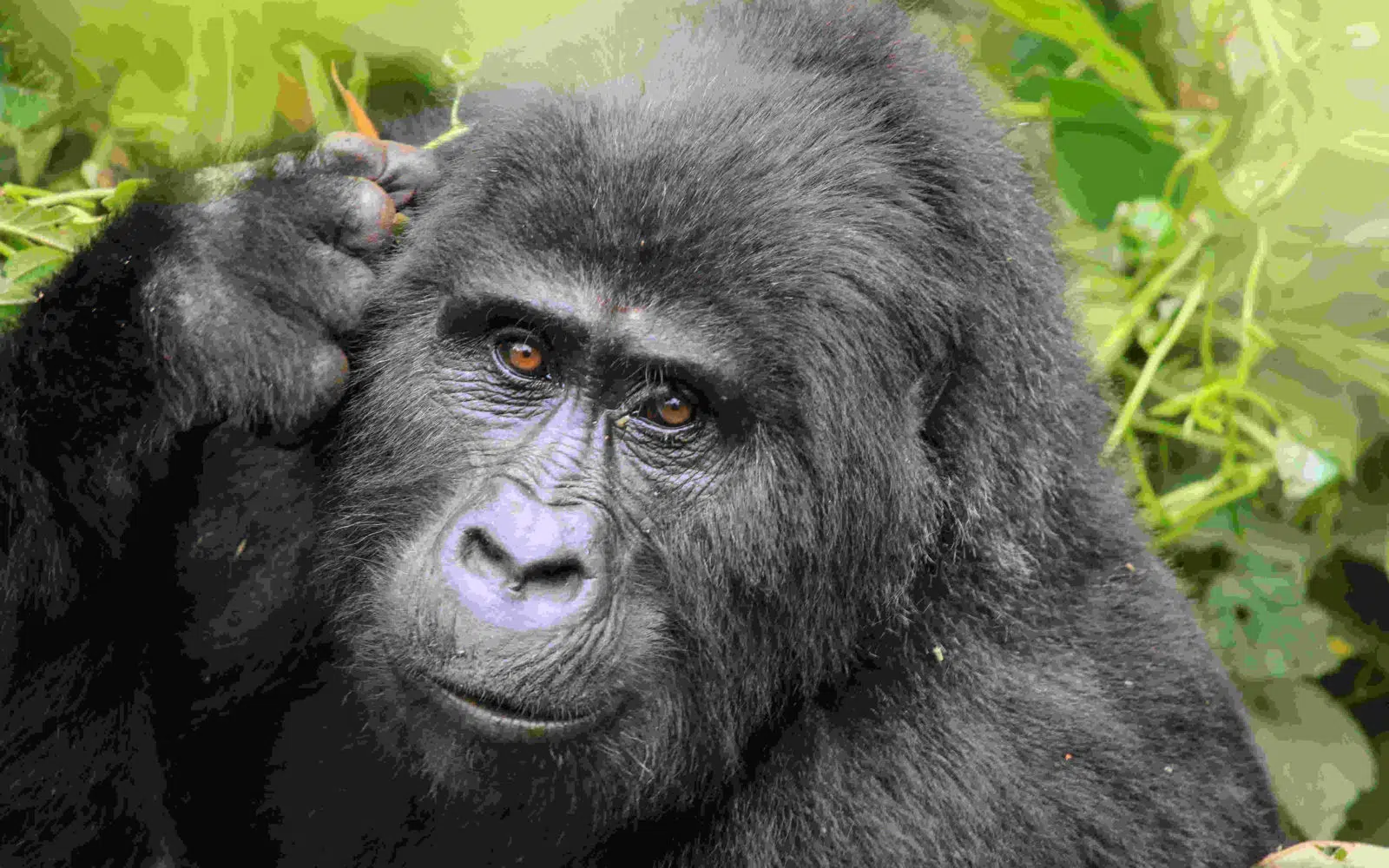 Ce matin, trek pour partir à la rencontre des gorilles de montagne dans la section Buhoma de Bwindi. Le parc protège environ 400 gorilles de montagne, soit environ la moitié de la population mondiale, dont plusieurs groupes habitués qui peuvent être approchés. La région abrite également 120 autres mammifères, dont plusieurs espèces de primates telles que des babouins, des chimpanzés, ainsi que des éléphants et des antilopes. Trek guidé par un ranger, durée aléatoire en fonction de la localisation des primates. 1h passée auprès des gorilles.