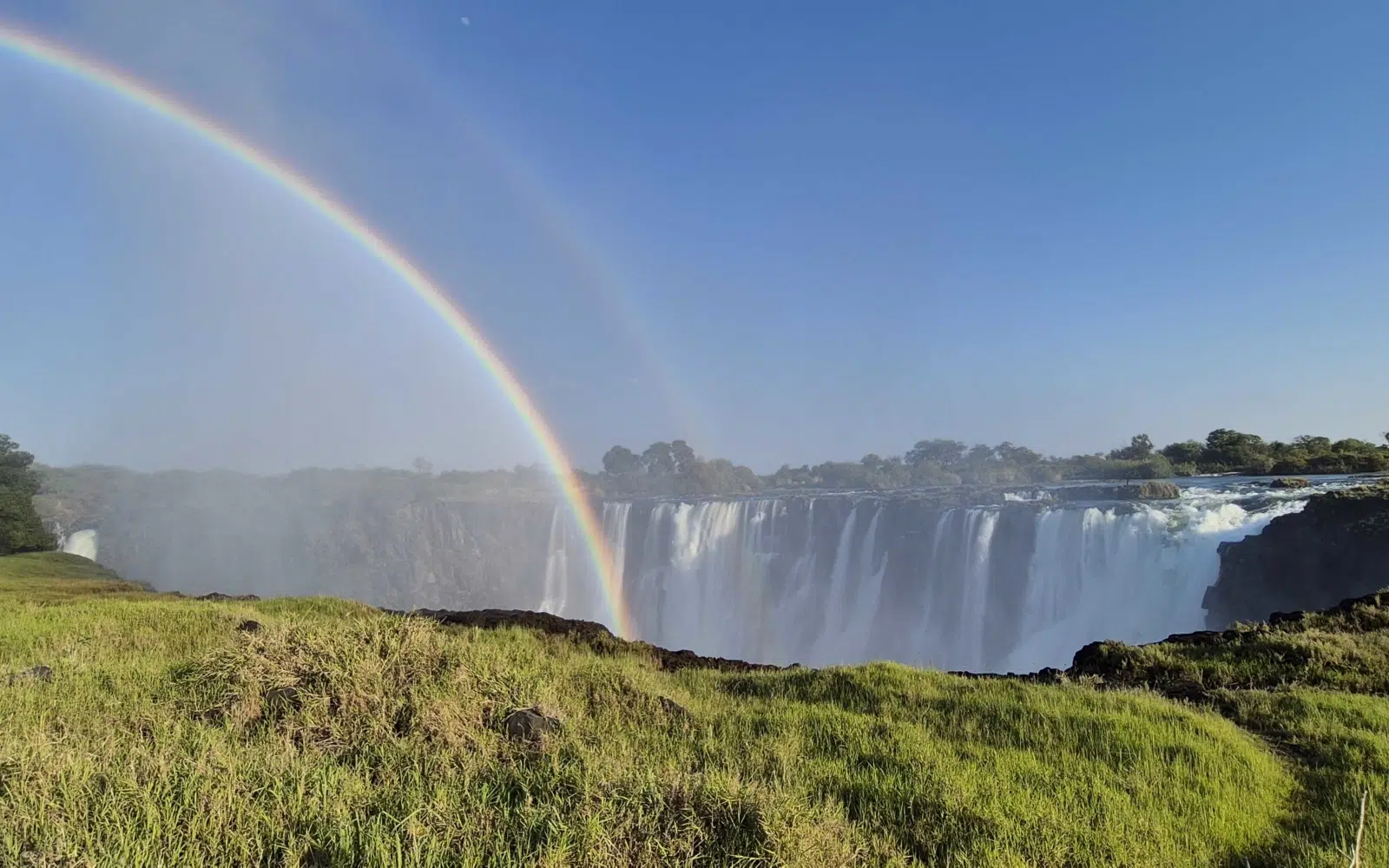 Petit-déjeuner et départ pour un tour guidé à pied des chutes du côté Zimbabwe. Un rideau d’eau long de 1,7 Km s’effondre d’une falaise haute de 108 mètres au point le plus profond. Elles furent découvertes par David Livingstone en 1855, les chutes offrent de nombreux points de vue qui figurent parmi les plus exceptionnels de la planète.