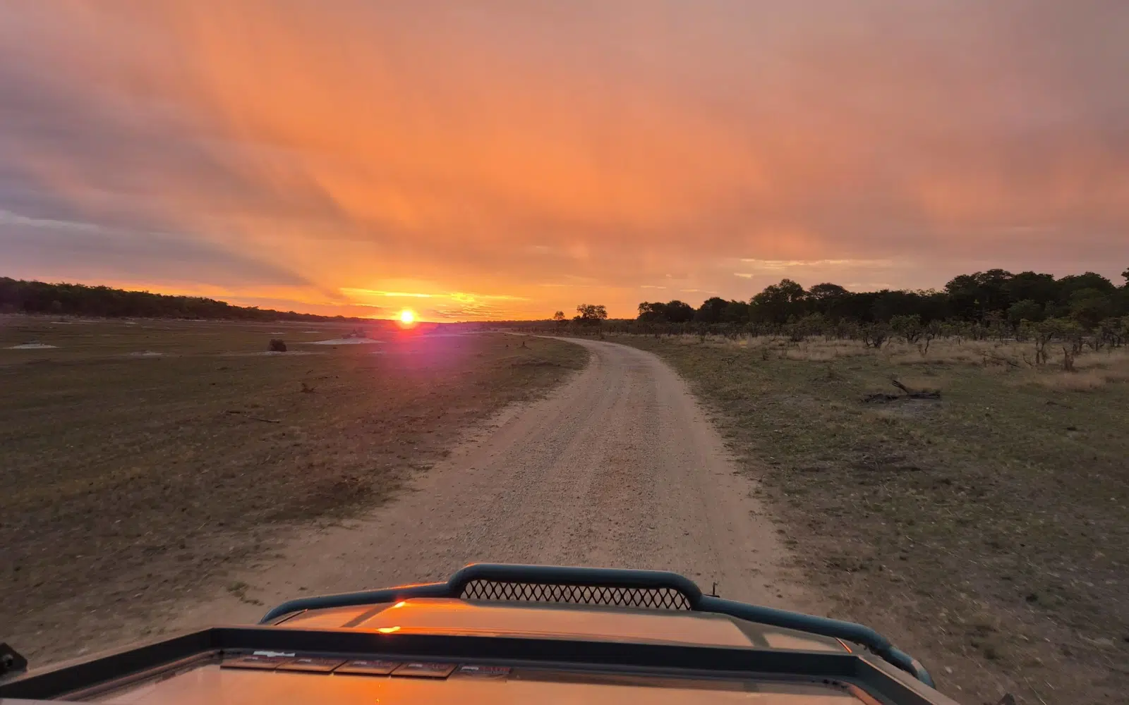 Route en direction de votre camp de tentes en plein bush. Installation et apéritif au coucher de soleil au bord du lac situé sur la concession du camp.